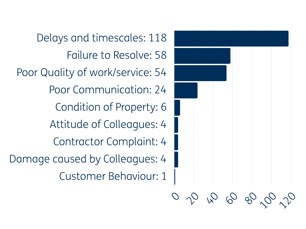 The service areas where we received the most complaints includes repairs (273 complaints) and community housing (116 complaints).