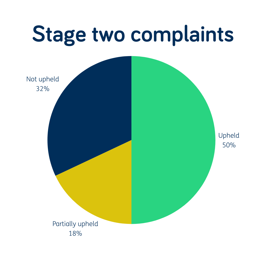 We completed more than 90% of stage one and stage two complaints within required timescales. This includes complaints where we agreed extensions. Read more to understand complaint timescales.