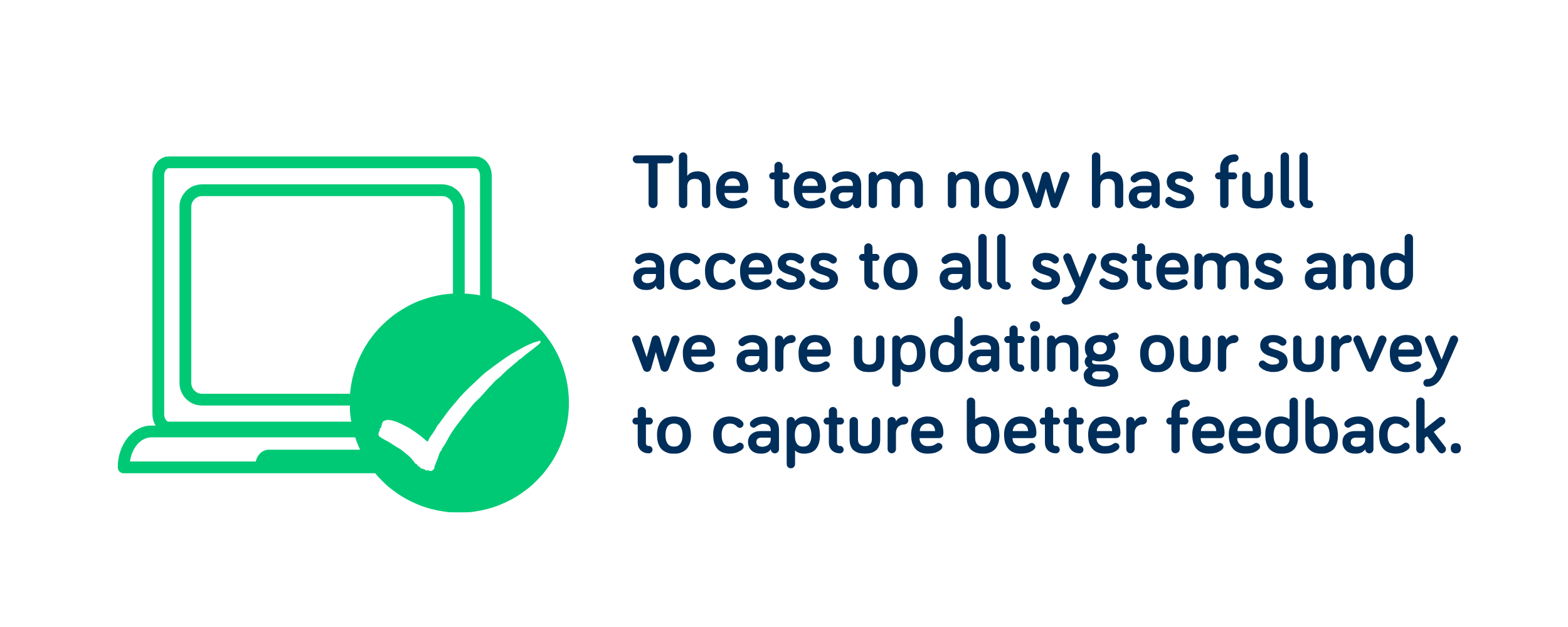 We did: The team now has full access to all systems and we are updating our survey to capture better feedback.
