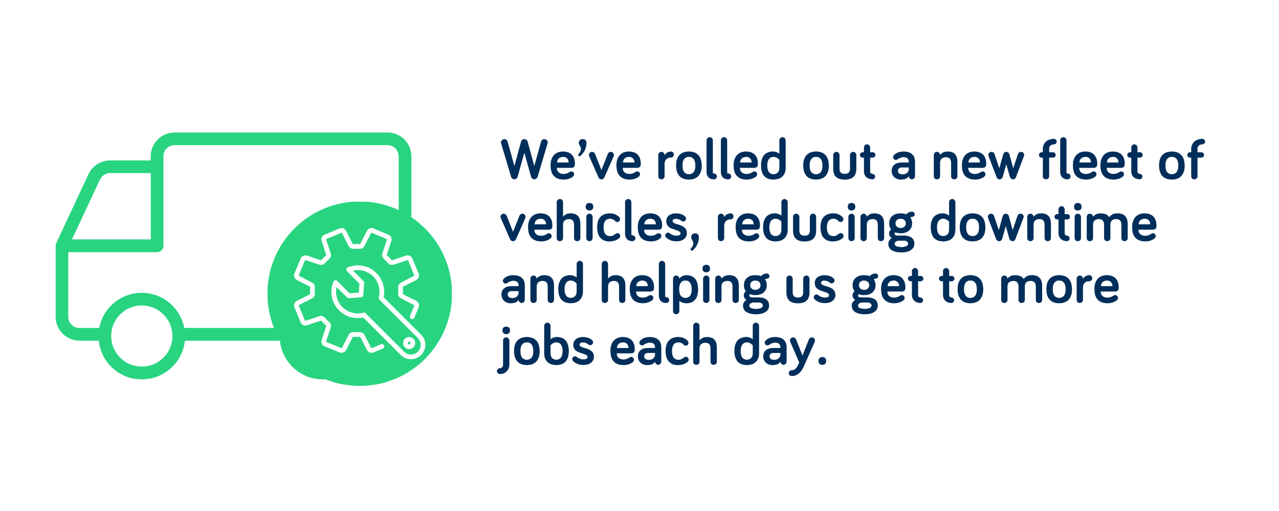 We’ve rolled out a new fleet of vehicles, which means less downtime and fewer vans off the road, helping us get to more jobs each day.