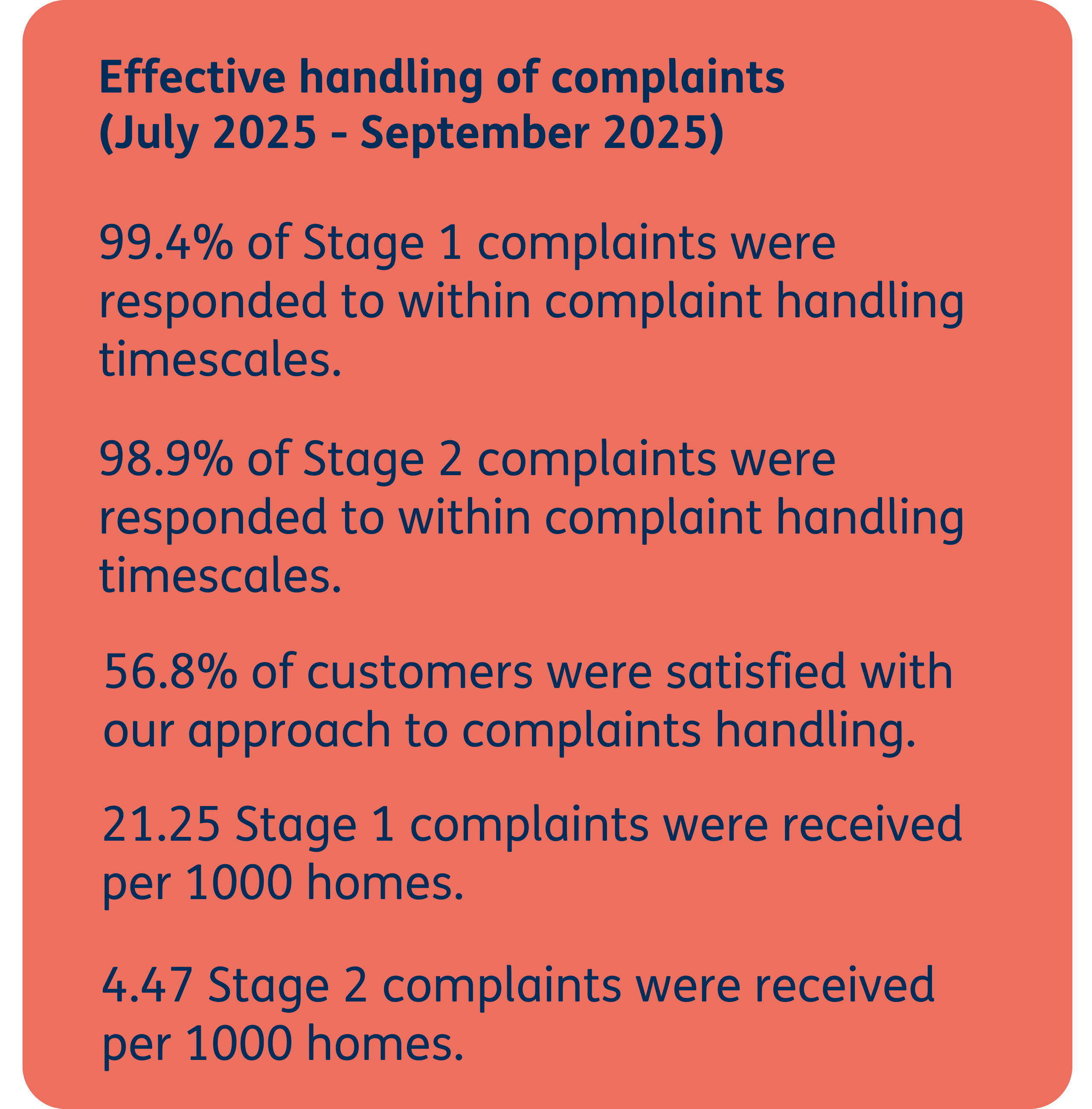 Some customers reported dissatisfaction with the timescales for repairs. Concerns were also raised about issues caused by other customers or neighbours, including antisocial behaviour and noise nuisance.